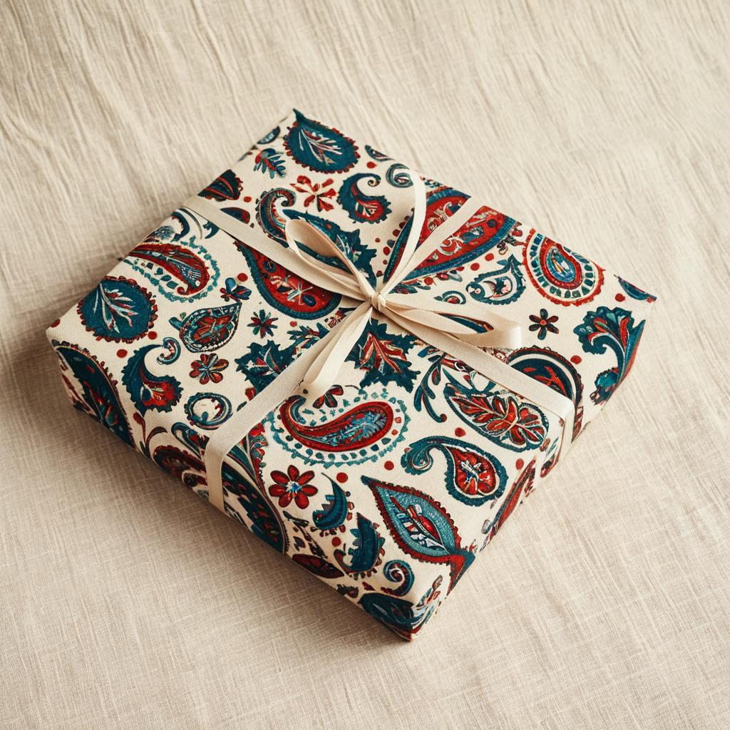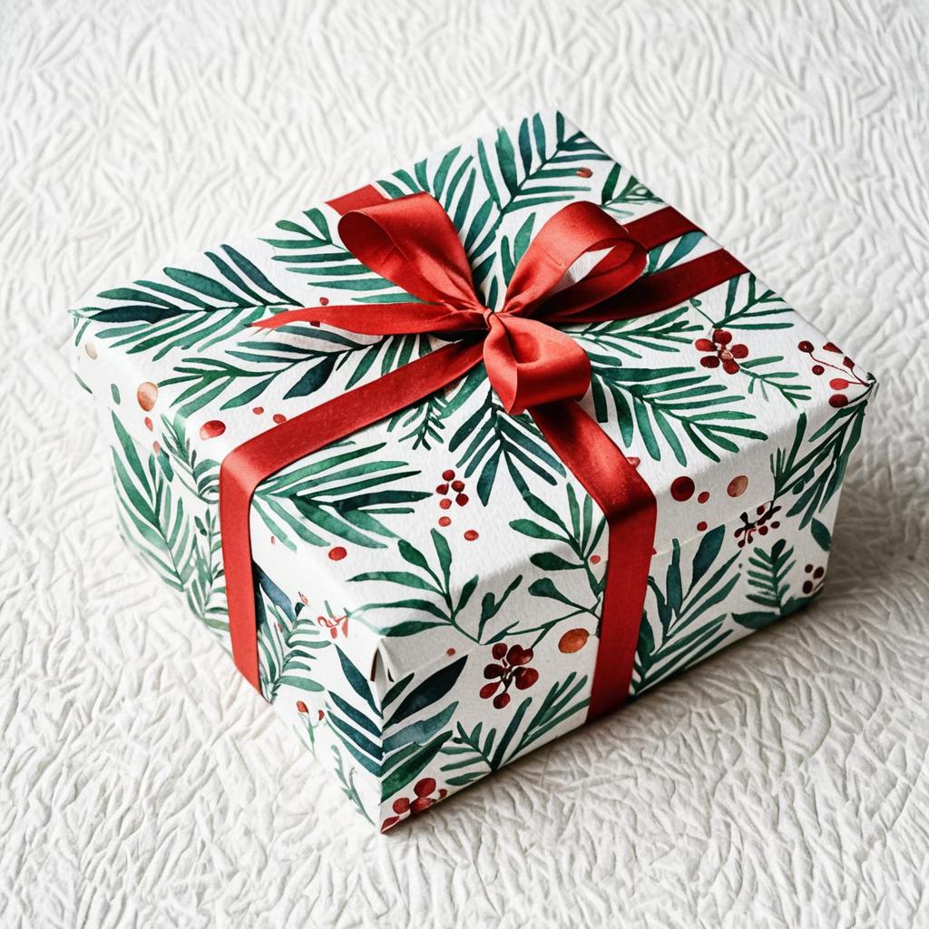 Cover for a Christmas present with a winter-themed pattern in minimalist style, on a icy blue textured paper background