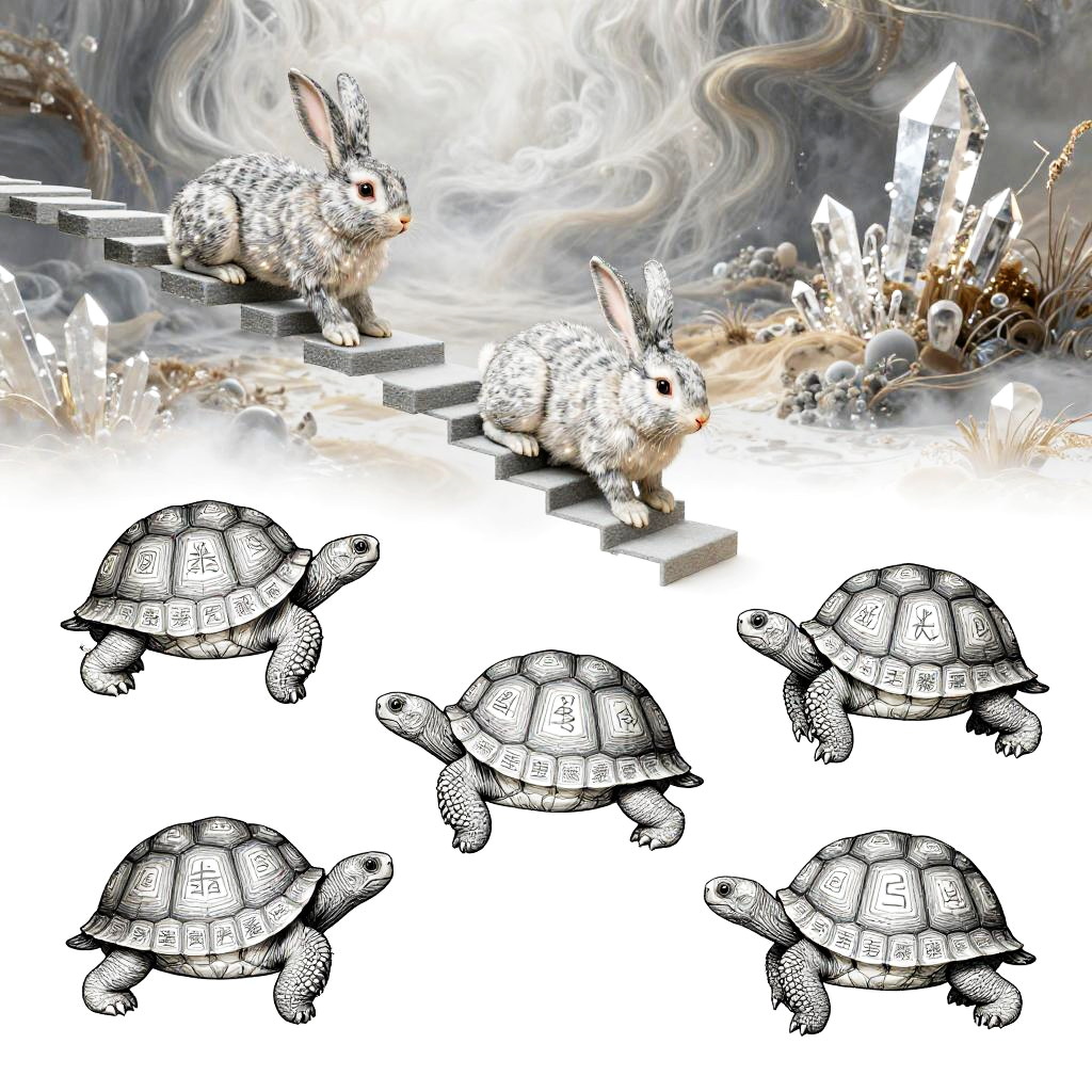 Wide-angle depth of field, whimsical wolf line art in different poses, on a white background. The bunny features surreal details like silver swirling fur patterns, in unusual positions like howling atop a moonlit cliff. The background is a dreamlike, distorted landscape with surreal elements like floating trees and giant flowers, rendered in 9:16 aspect ratio.