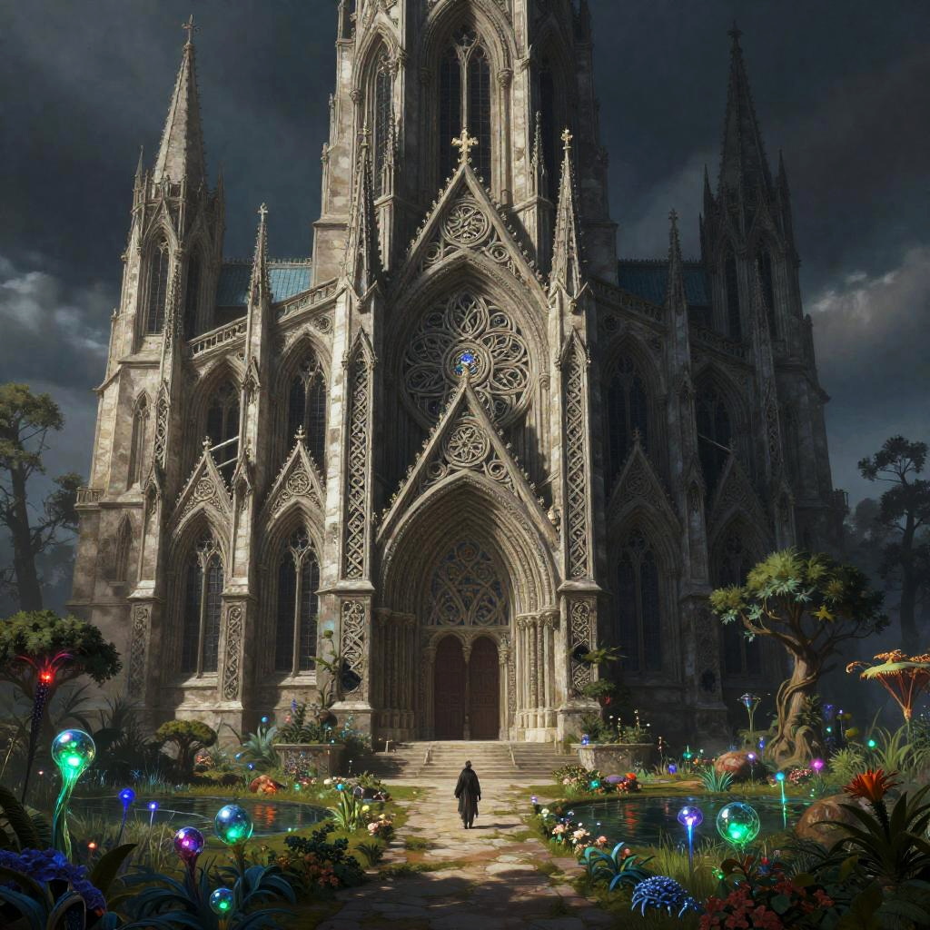 Bioluminescent Elven Cathedral in Garden