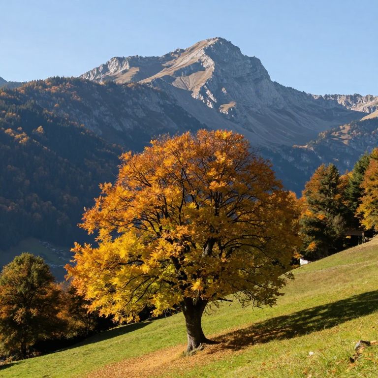 Autumn Tree in Swiss Mountain Landscape