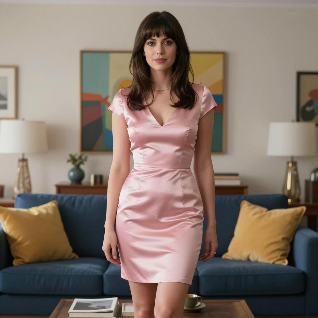 Blonde Woman in Peach Shirt and Pink Plaid Skirt Outdoors