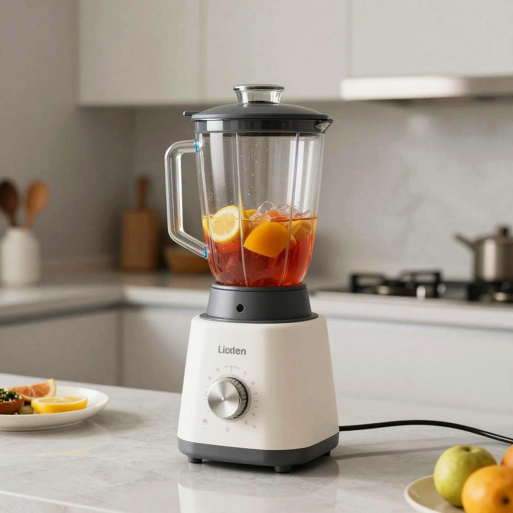 A stable diffusion blender seamlessly blending vibrant colors in a modern kitchen, soft natural light, photorealistic textures, realistic reflections, stylish minimalistic design, 8k clarity