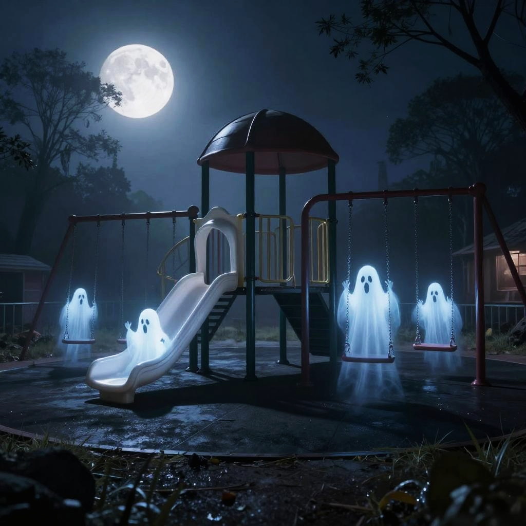 Ghostly Acrobat in Macabre Backyard