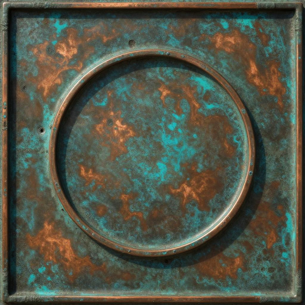 Patina copper texture with rich turquoise and bronze hues, weathered metal surface showing corrosion details, antique architectural element, realistic lighting and shadows