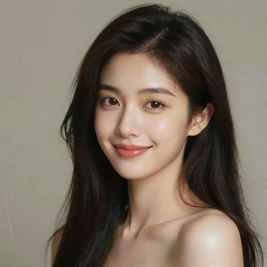 Photograph of a young Asian woman with long, straight brown hair, wearing a light green knit sweater, smiling softly in natural light.