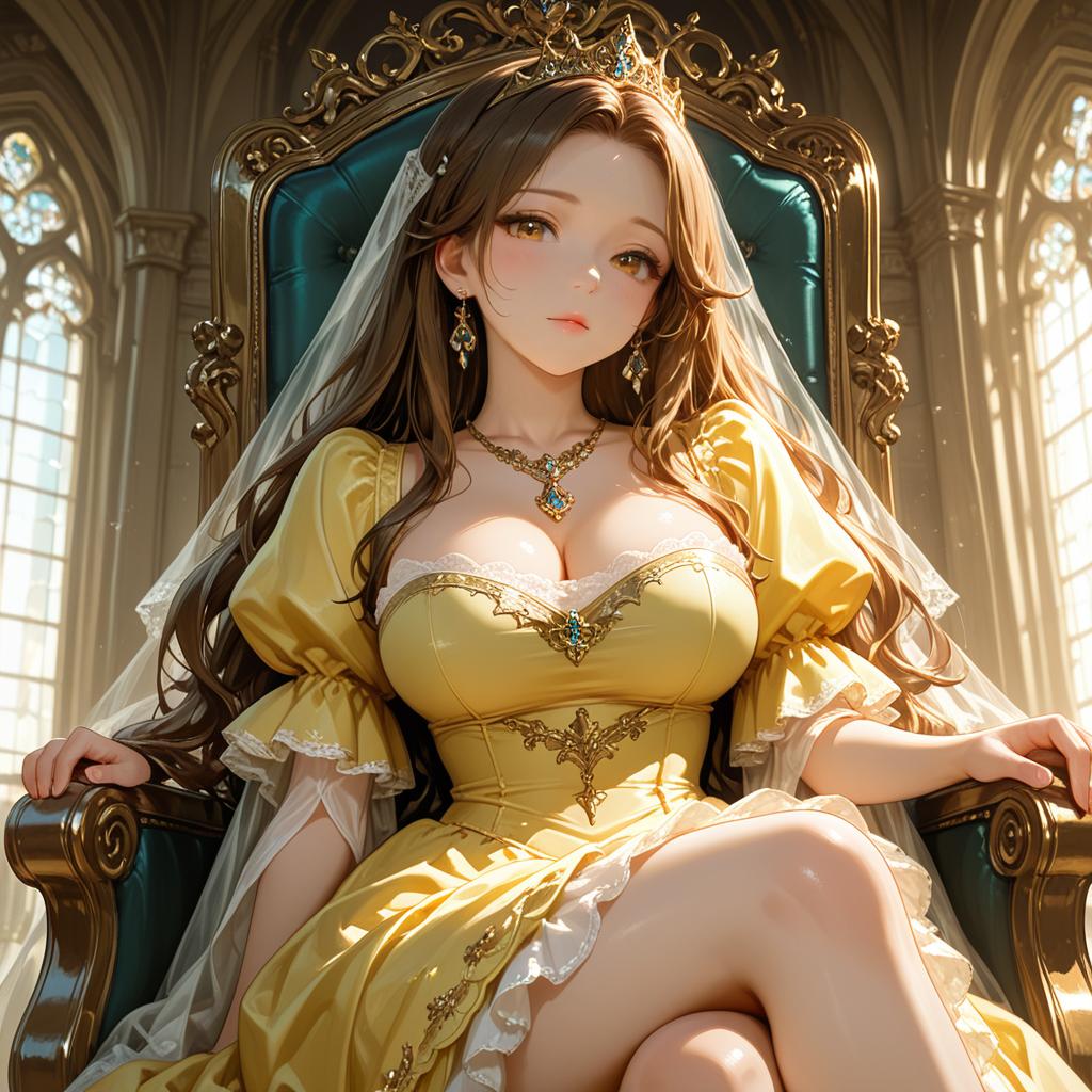 Elegant Woman in Yellow Dress with Tiara