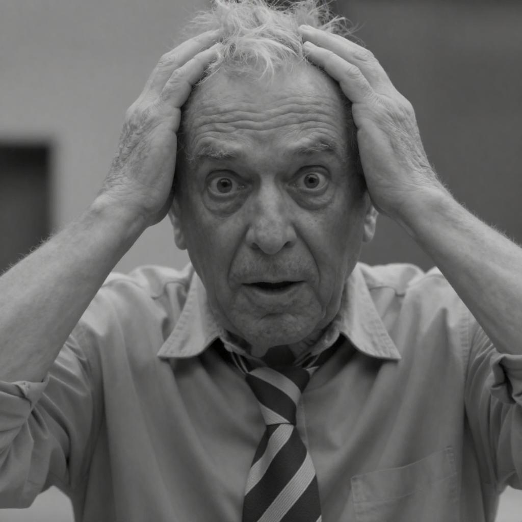 Surprised Older Man in Black and White