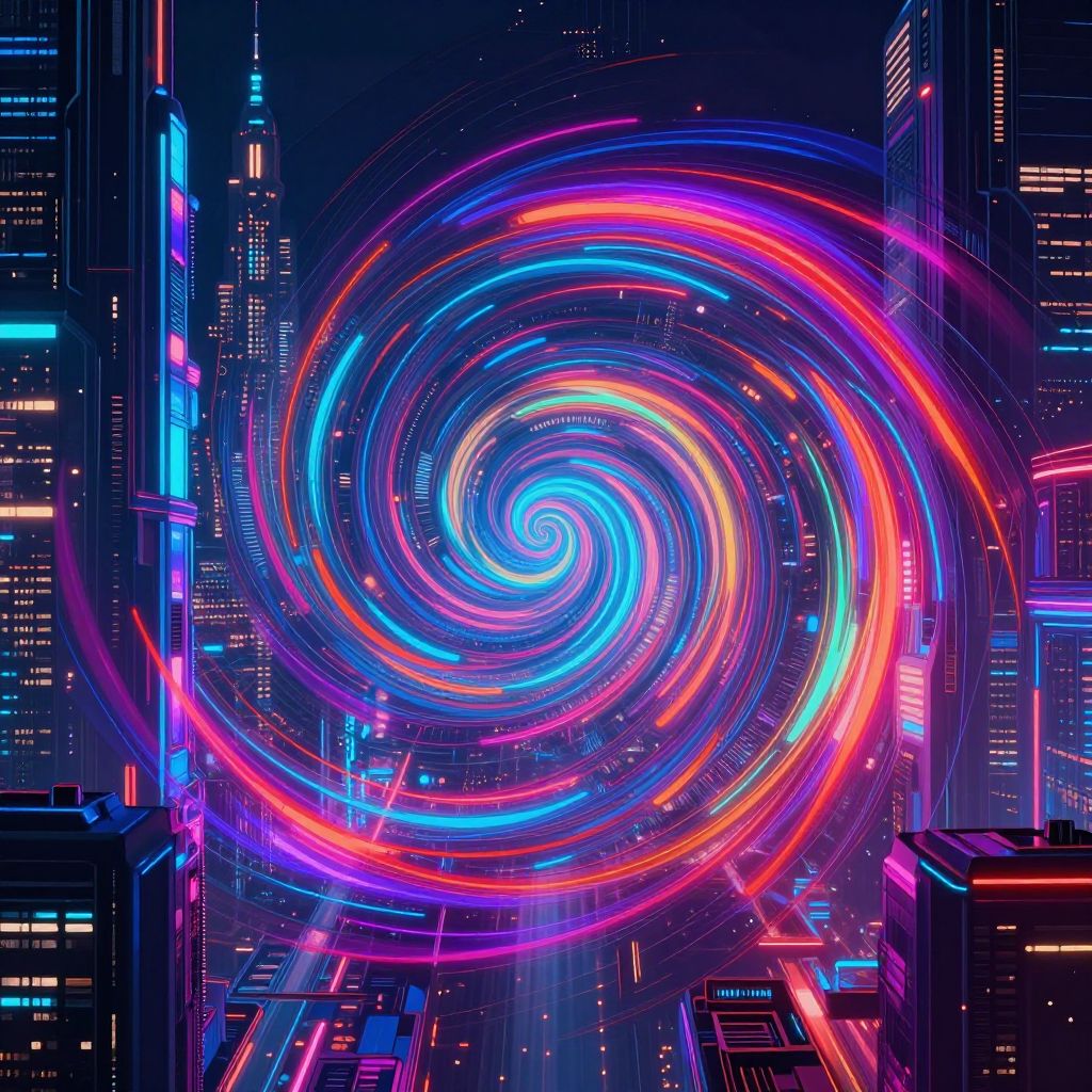 Best AI background generator creating vibrant digital abstract patterns, swirling neon colors, futuristic cyberpunk cityscapes with glowing lights and intricate details, ultra-high resolution, dynamic lighting effects, seamless blend of technology and art.