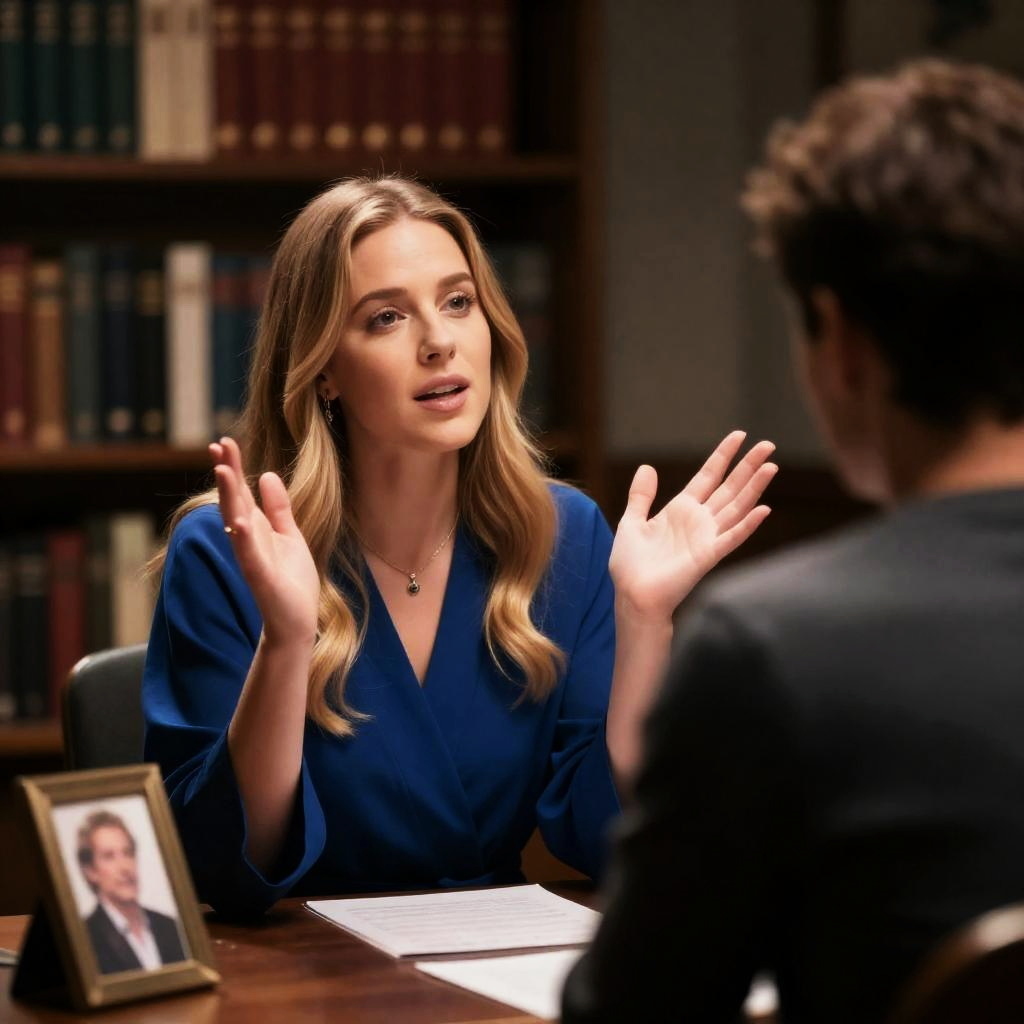 Photograph of a crowded theater. Central focus on a woman with blonde hair in a black top, red floral skirt. Beside her, a man in a light blue jacket, dark mustache. Several men in the background, serious expressions. Dim lighting, casual clothing.