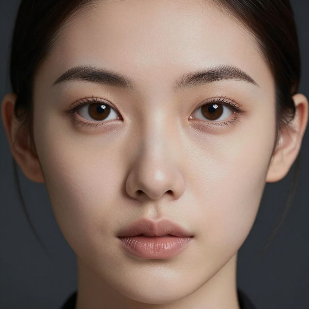 Stable diffusion fix faces enhanced image close-up, ultra-detailed human face with perfect symmetry and smooth skin texture, subtle digital enhancements visible, photorealism with shallow depth of field, subtle futuristic elements suggesting AI intervention