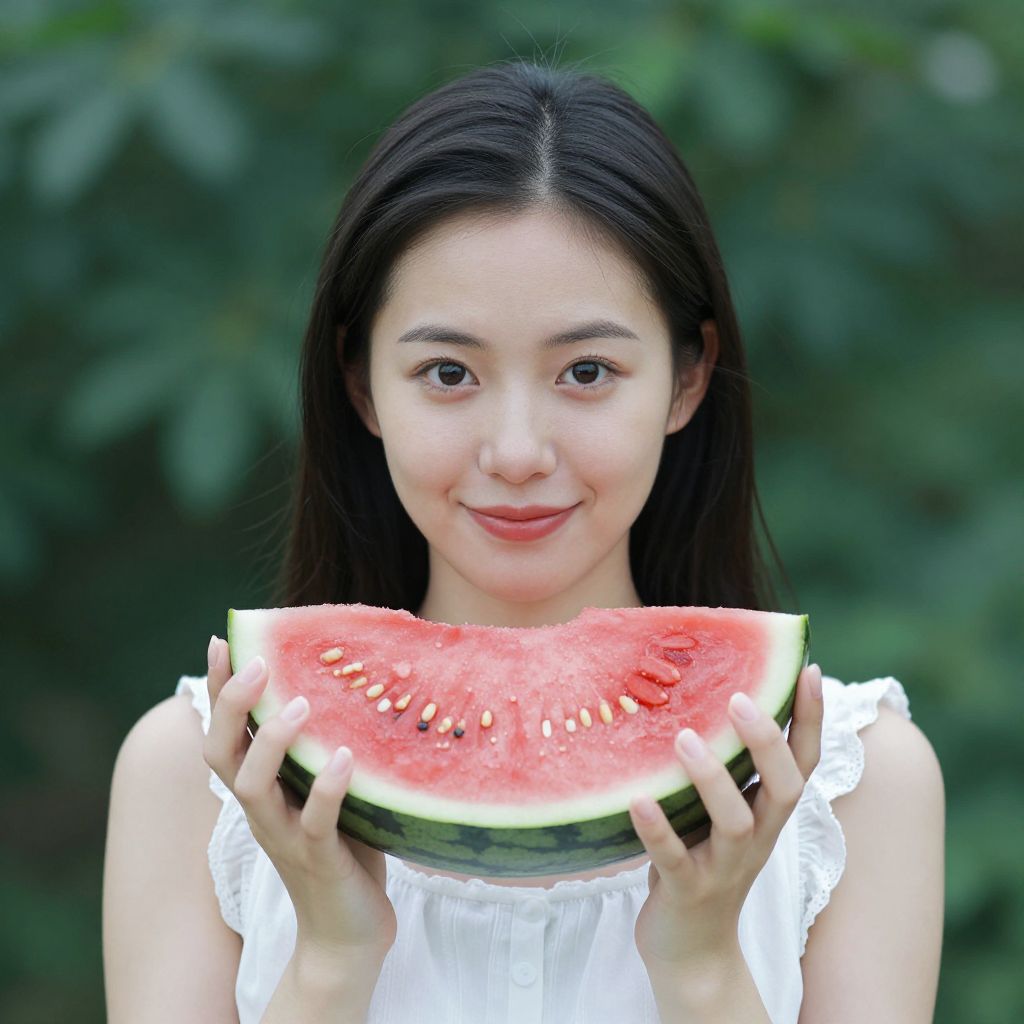 Woman Holding Fresh Watermelon