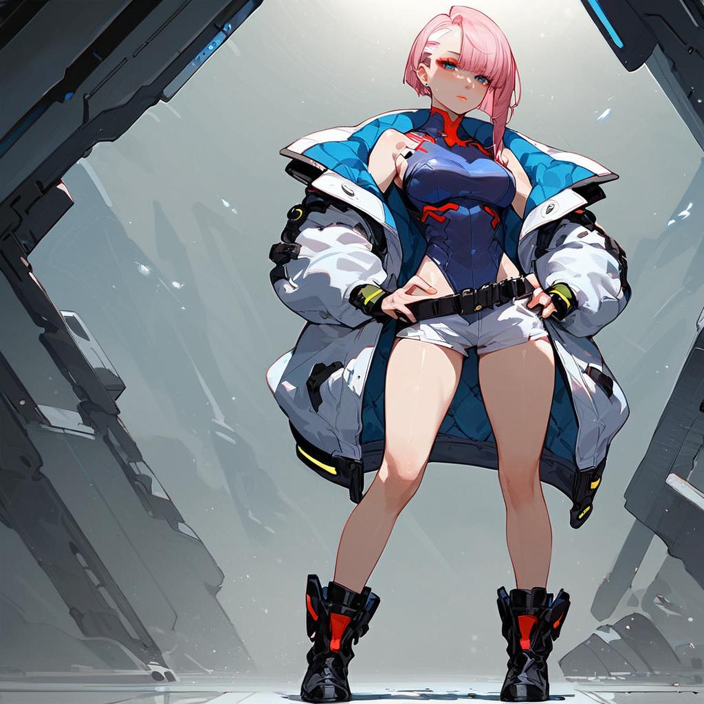 Anime Girl with Giant Robot in Futuristic Tunnel