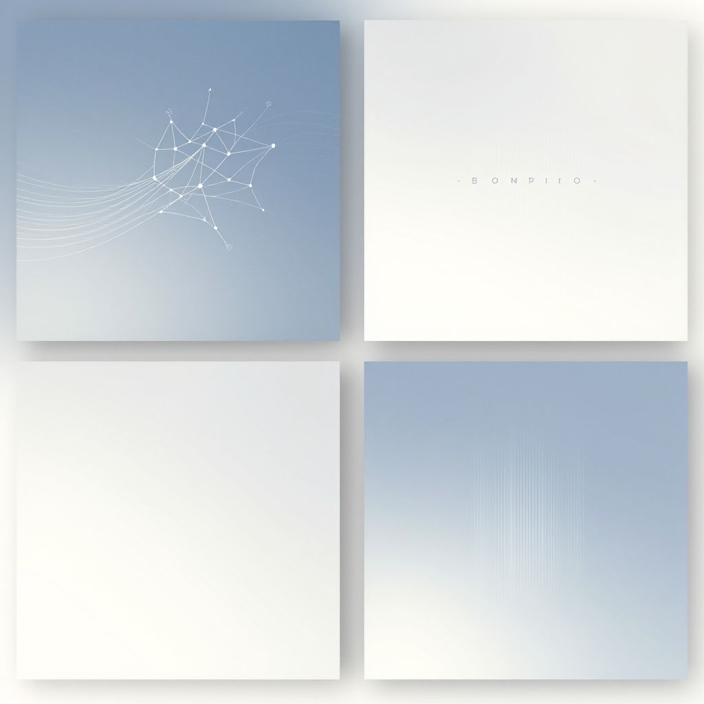 AI generated album covers with minimalist AI motifs, incorporating neural network patterns and flowing data streams, soft gradients and futuristic typography, creating a clean yet emotionally resonant design suitable for ambient and experimental music albums.