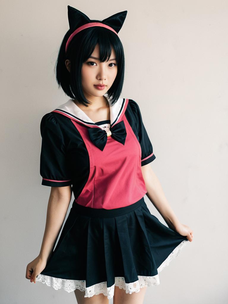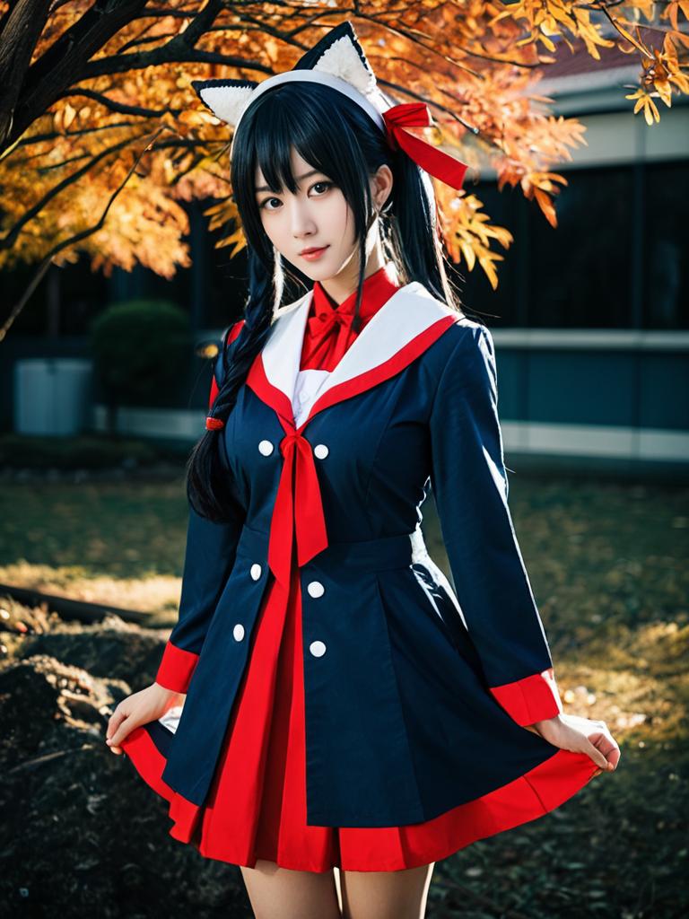 Sexy cosplay woman character wearing Maho Hiyajo costume. Realistic photo. Jane Doe dressed as Maho Hiyajo --sref 1388