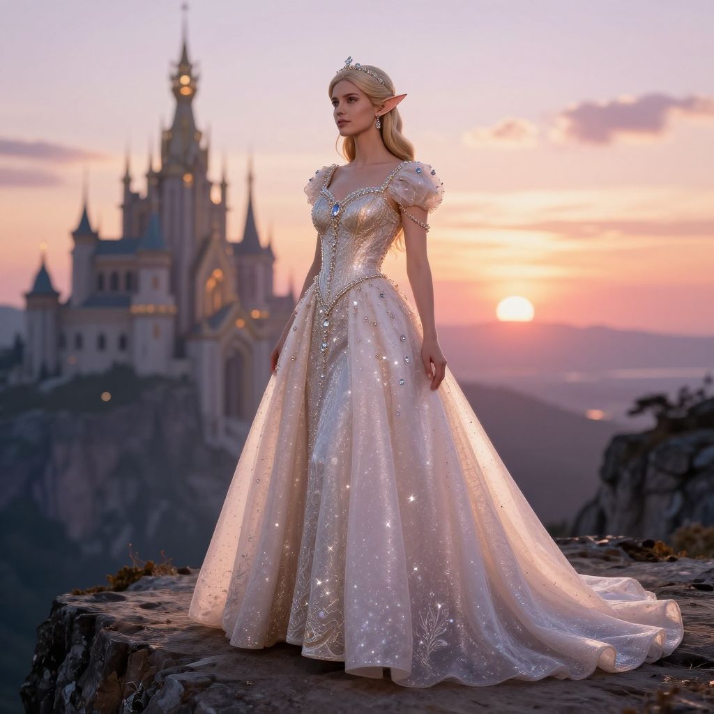 Regal Elf Princess in Fantasy Gown