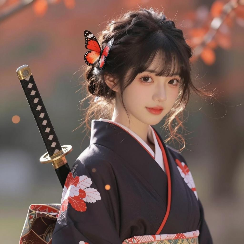 Asian Woman with Red and White Demon Mask