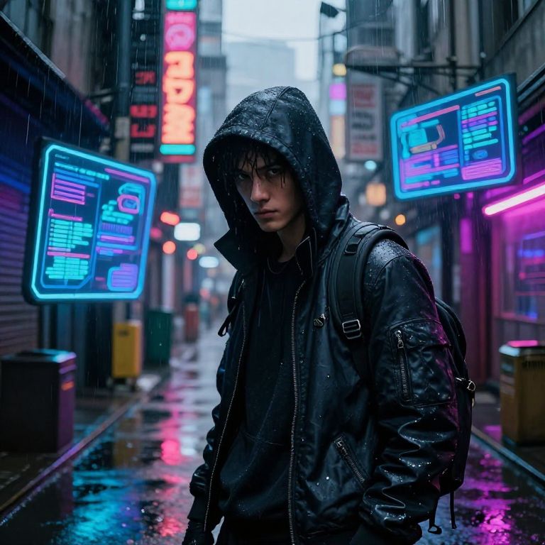 Cyberpunk Hacker in Neon Alleyways