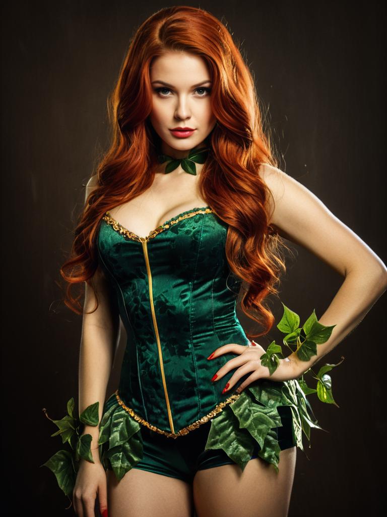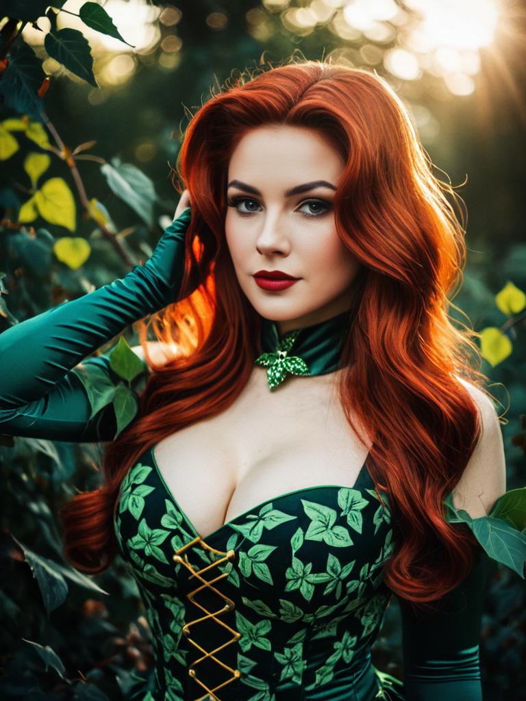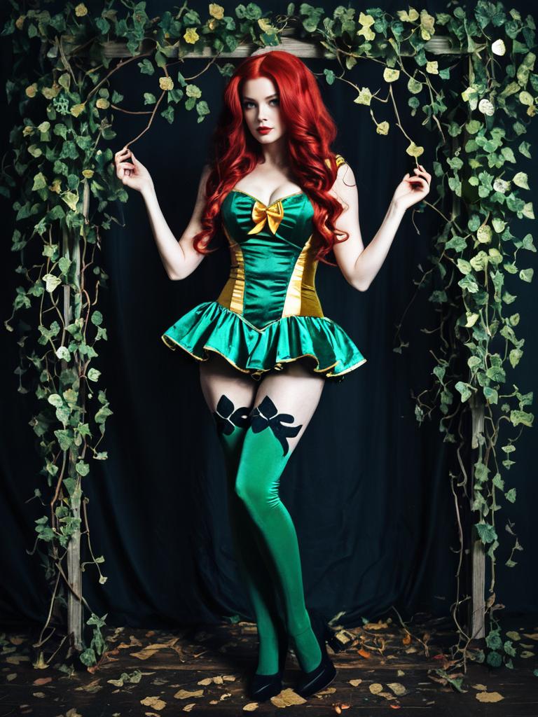 Woman in Vintage Poison Ivy Costume, full-body cosplay photo with vines --sref 1391