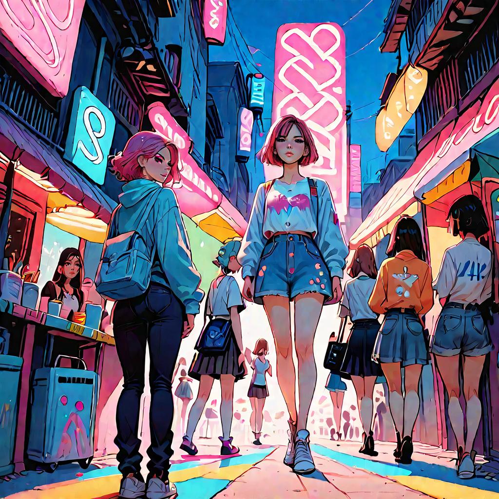 Score_9, score_8_up, score_7_up, score_6_up, multiple girls, party, neon lights