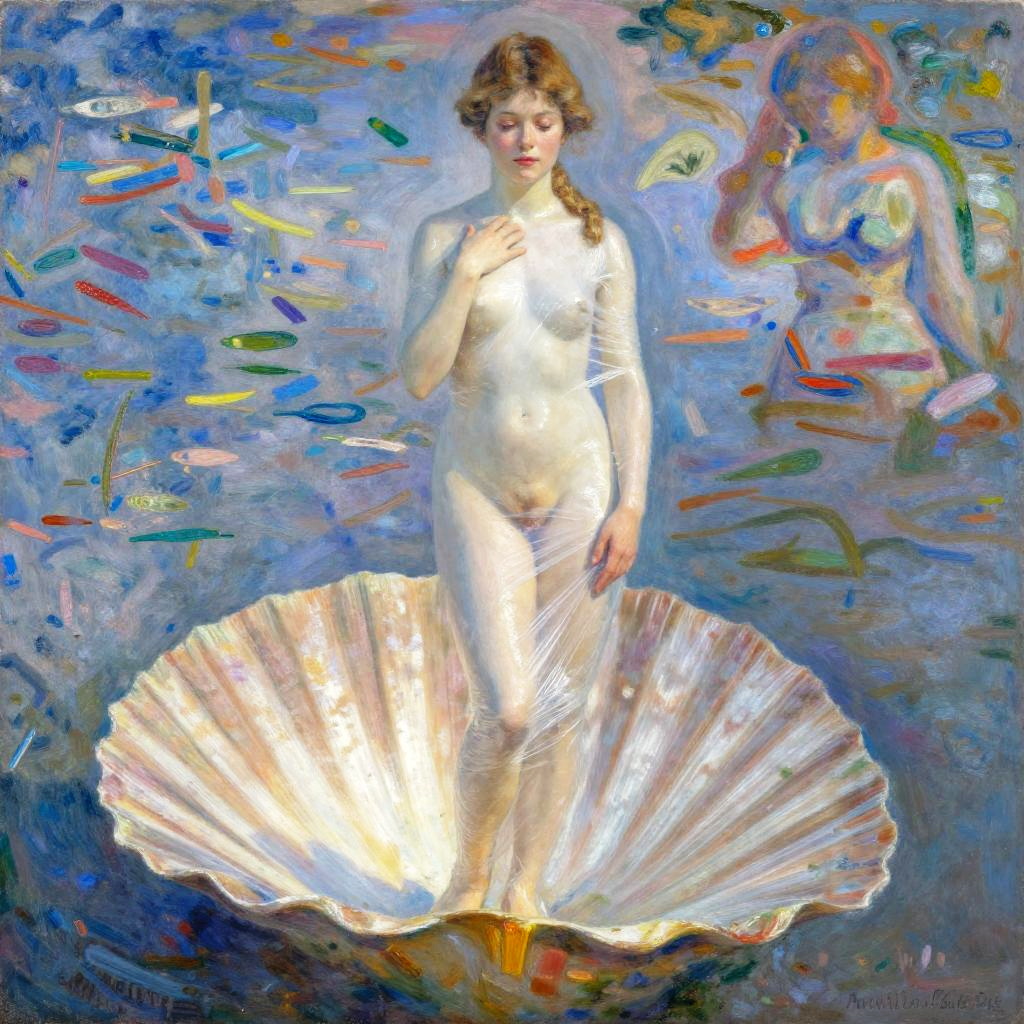 Realistic photo.woman wearing sexy clothes, in the style of Claude Monet, digital art, lineart made of neon orange and neon green coloring, with a swirling paint splash pattern in the background realistic photo