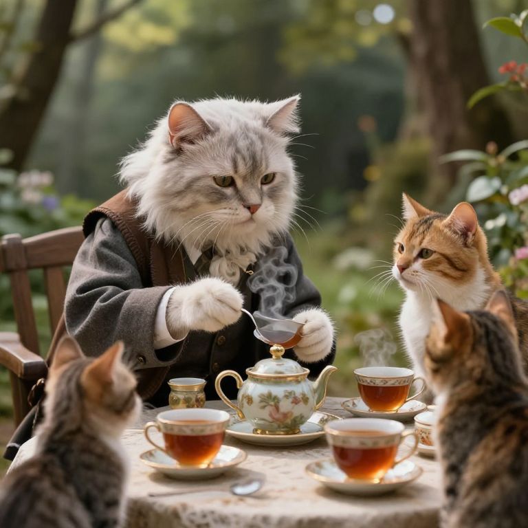 Elderly Feline Sage's Whimsical Tea Party