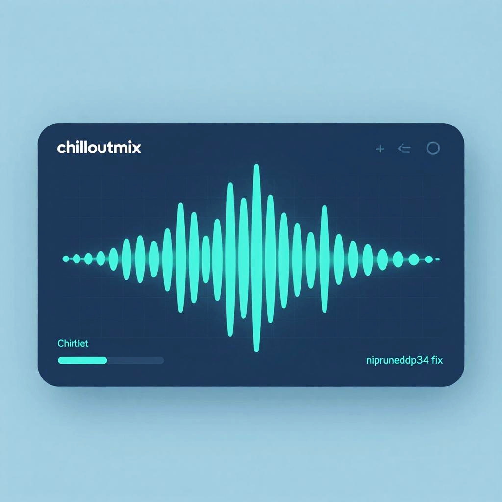 Abstract digital interface featuring a chilloutmix soundwave visualization in blue and teal hues. The design is minimalist and futuristic with clean lines, modern aesthetic, and a sleek vector art style, conveying technology balanced with relaxation.