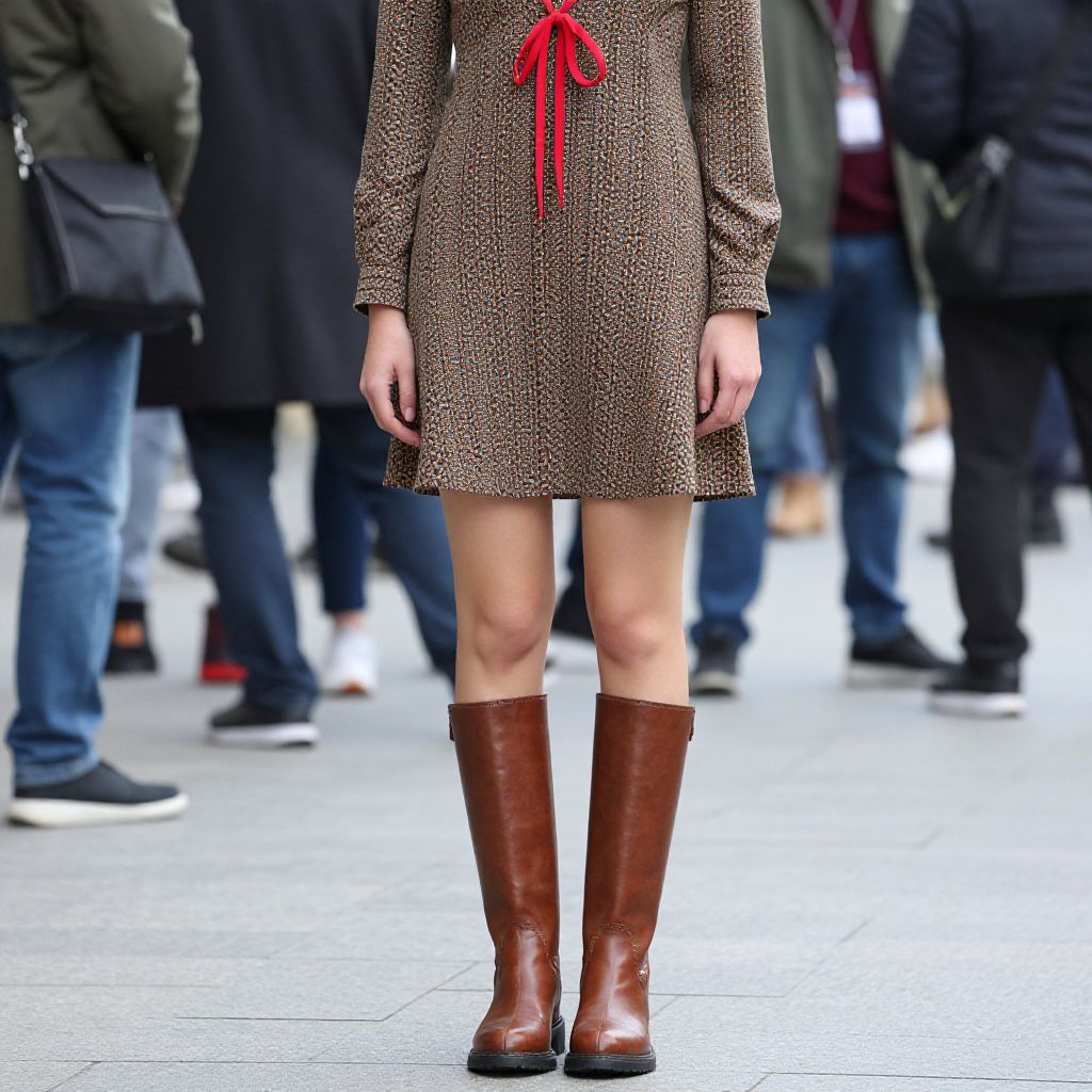 A woman strides confidently through a vibrant field of blooming flowers. The striking array of colorful tulips and daisies creates a picturesque backdrop, highlighting her stylish dress in a playful blend of patterns and colors. This enchanting scene captures the essence of spring and the beauty of nature.