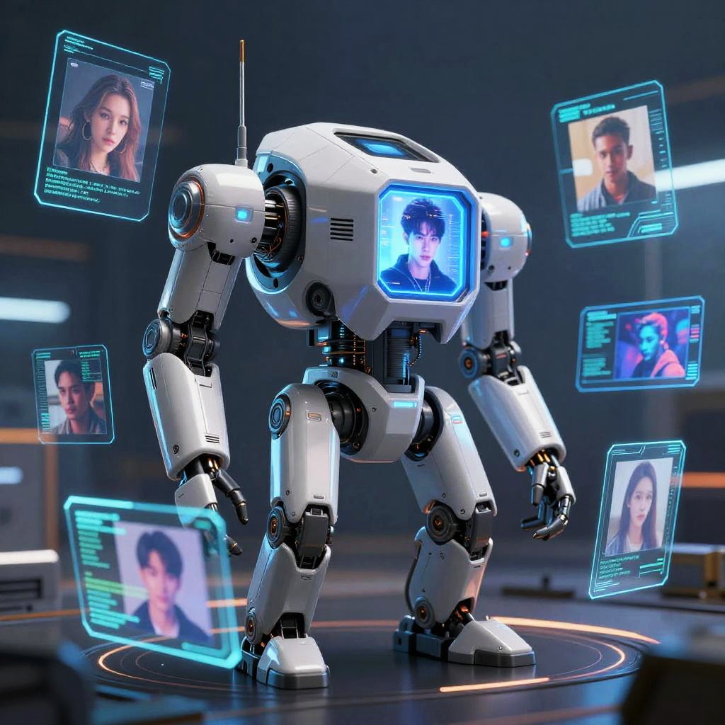 AI image variation generator concept art featuring a sleek, high-tech machine crafting diverse artistic images from a single source, surrounded by holographic displays and code streams, blending technology and artistic innovation in a cyberpunk style.