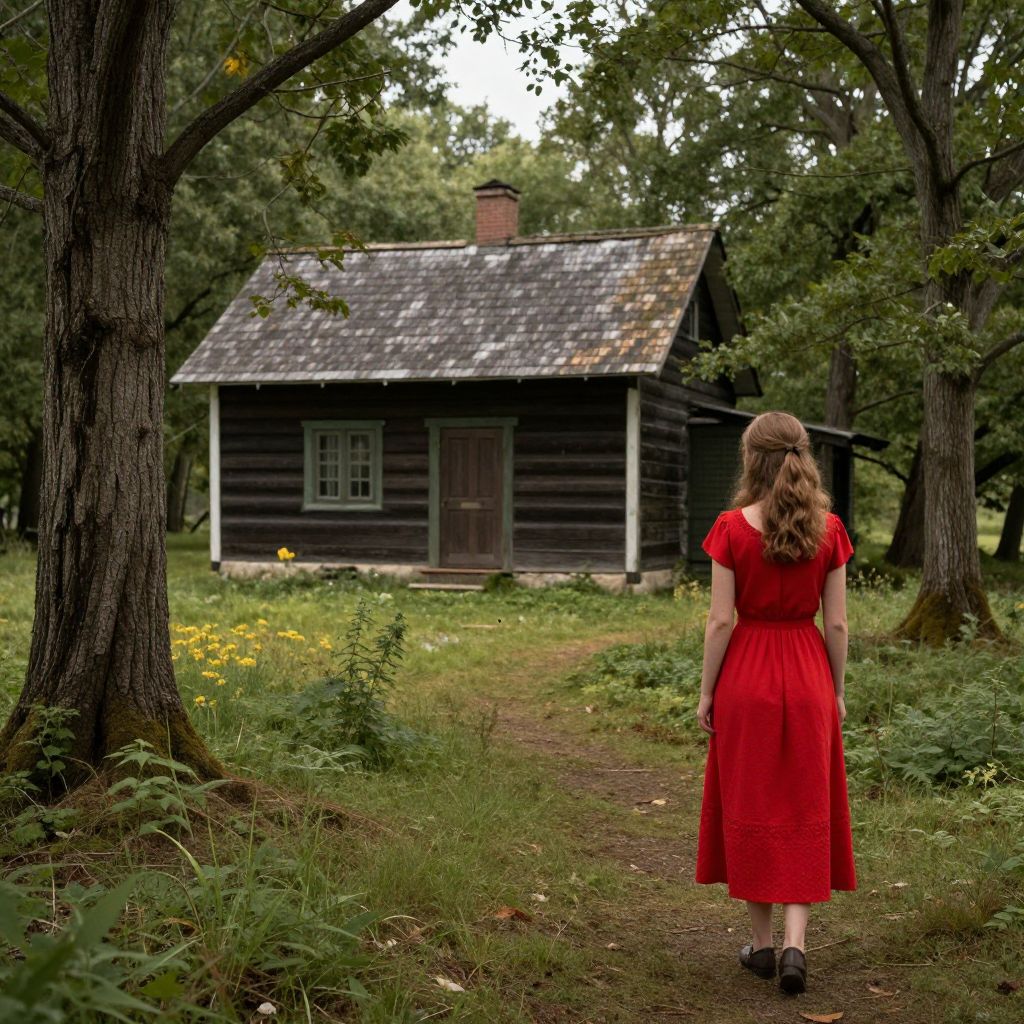 Cottage in the Woods | Writing Prompt Tell us a story about the woman in the red dress.