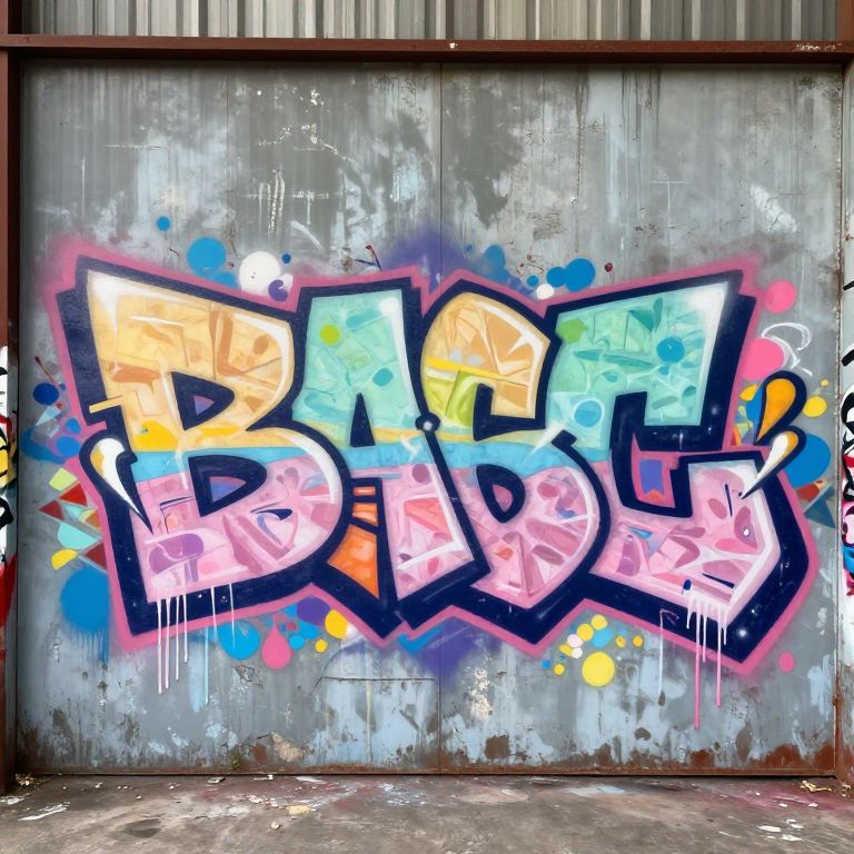 Easy graffiti art words painted on a weathered metal surface, bright pastel colors with drip effects, creative blend of traditional graffiti typography and modern street art influences, dynamic composition with splatter patterns in an industrial environment