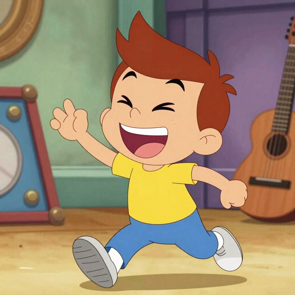 Alvin and the Chipmunks teeth exaggerated cartoon focus, energetic movement, bold outlines, vibrant colors, cheerful and whimsical vibe, animated musical instruments in background