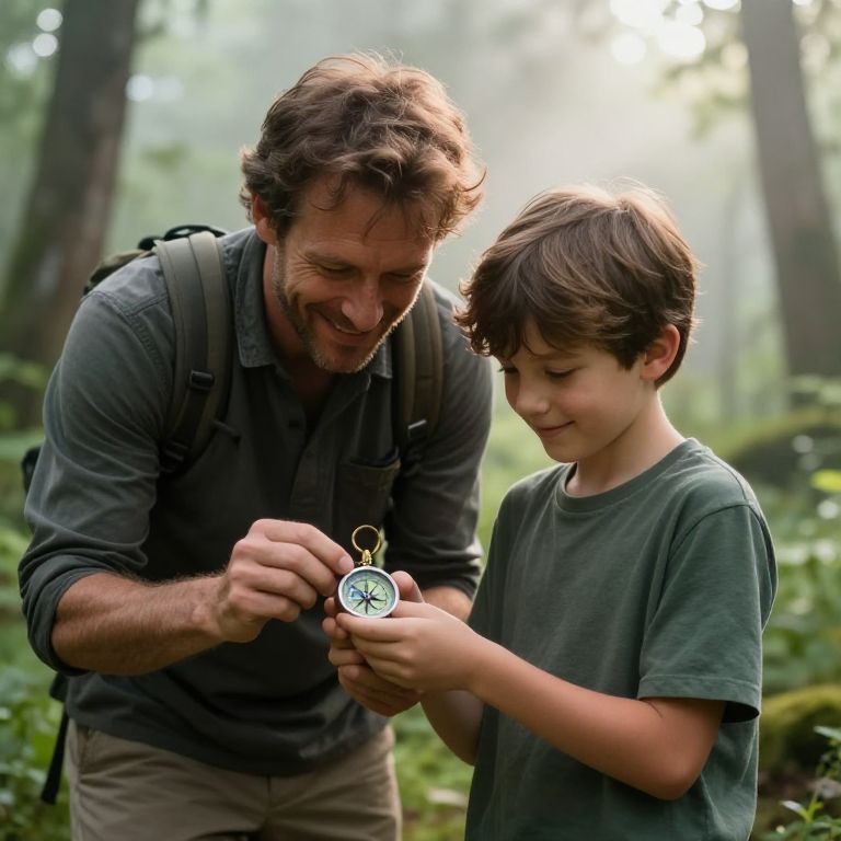 Prompt for father and son photo: Inside a rustic garage, a dad teaching his teenage son to fix a motorcycle engine, both in jeans and work gloves, tools scattered around, sunlight streaming through a window, focused on hands and shared concentration, authentic and emotional tone, mid-journey style.