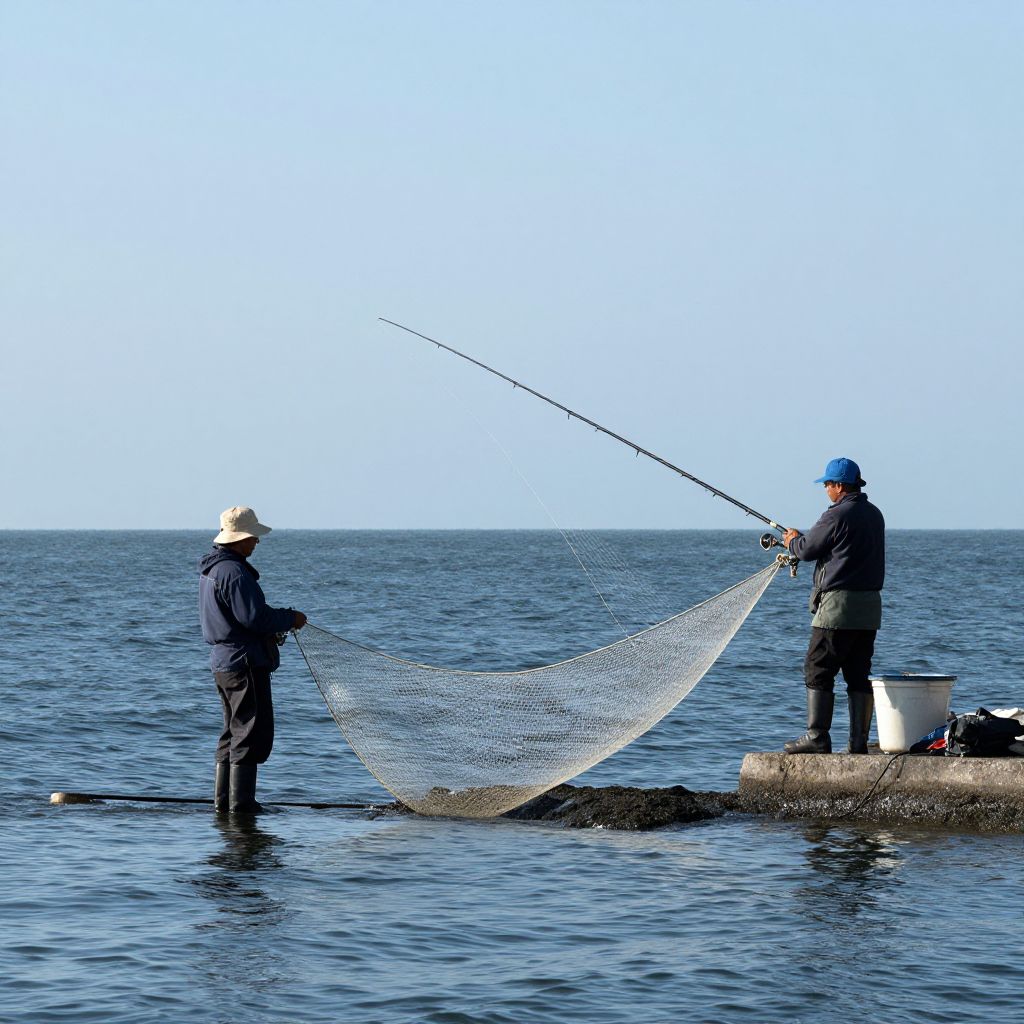 Fishermen cast nets woven from wind, catching time itself as it slips through the cracks in reality.