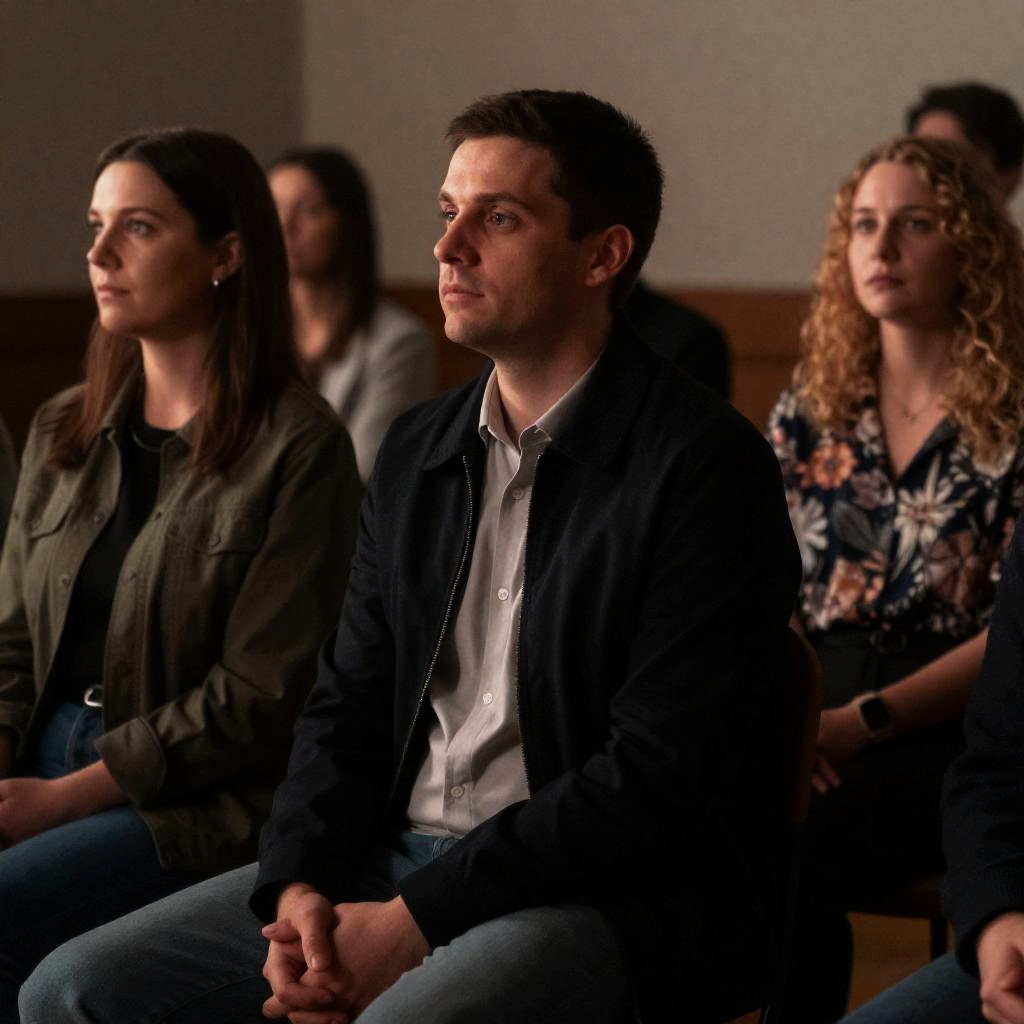 Concerned Woman in Dimly Lit Room