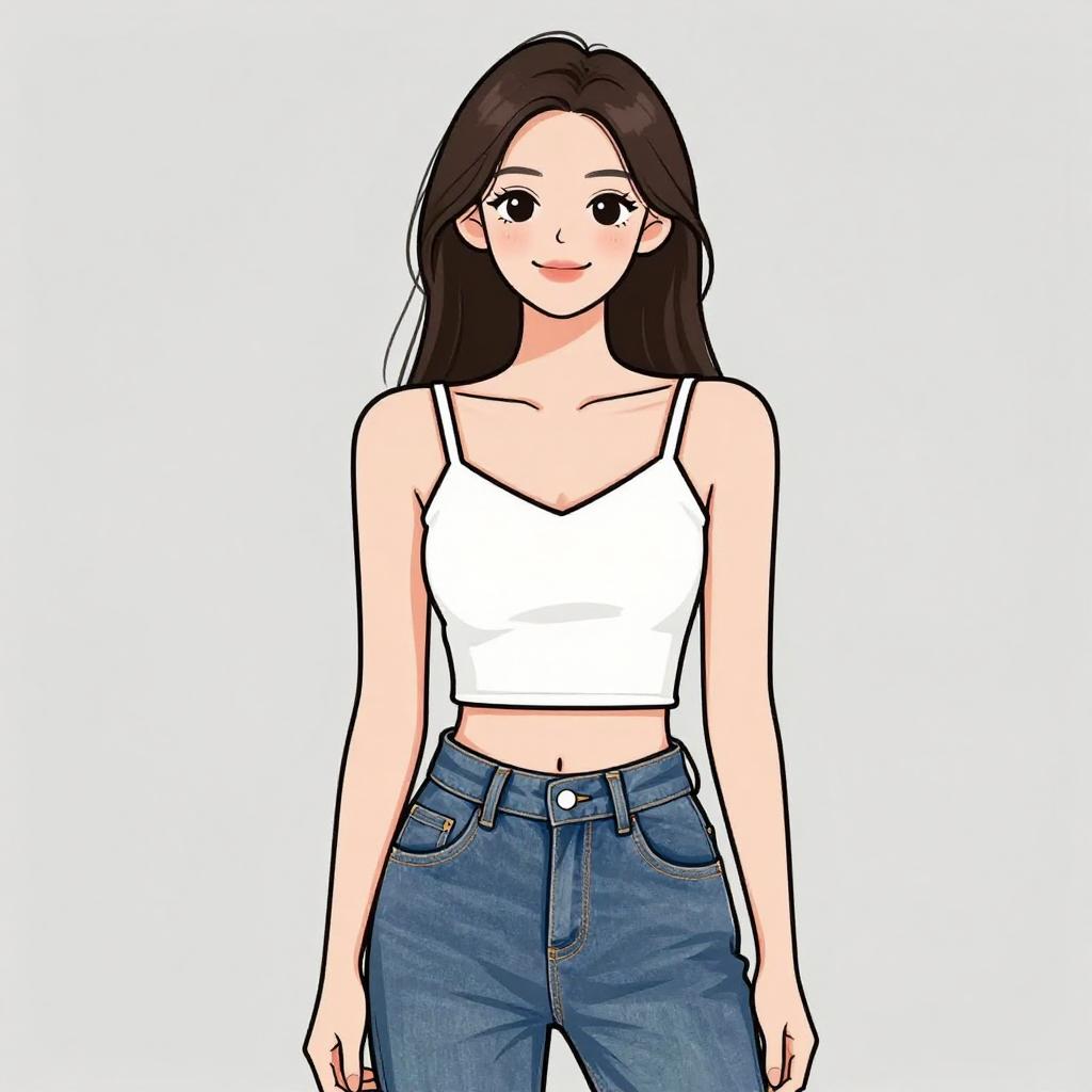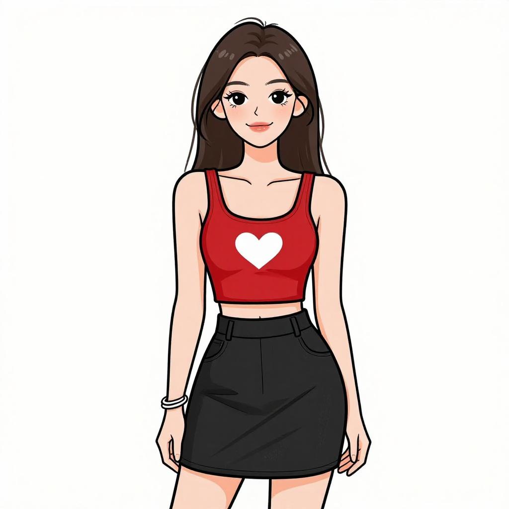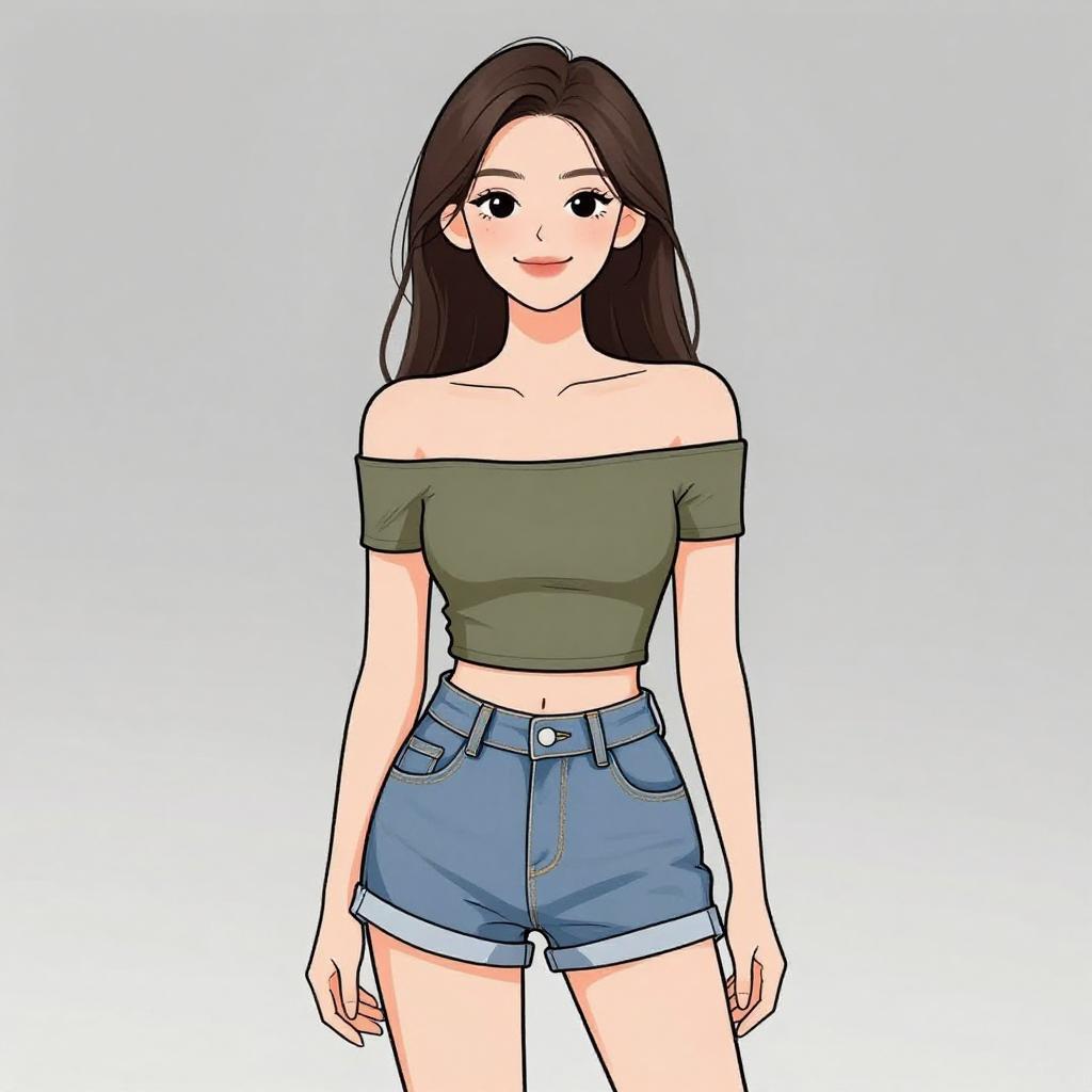 Woman with pretty face and pretty hair. smiling Woman, contemporary streetwear, leopard print halterneck crop top, high-waisted black denim mini skirt, exposed front zipper, solid color, photo studio background with a gradient from light to dark. --sref 1467