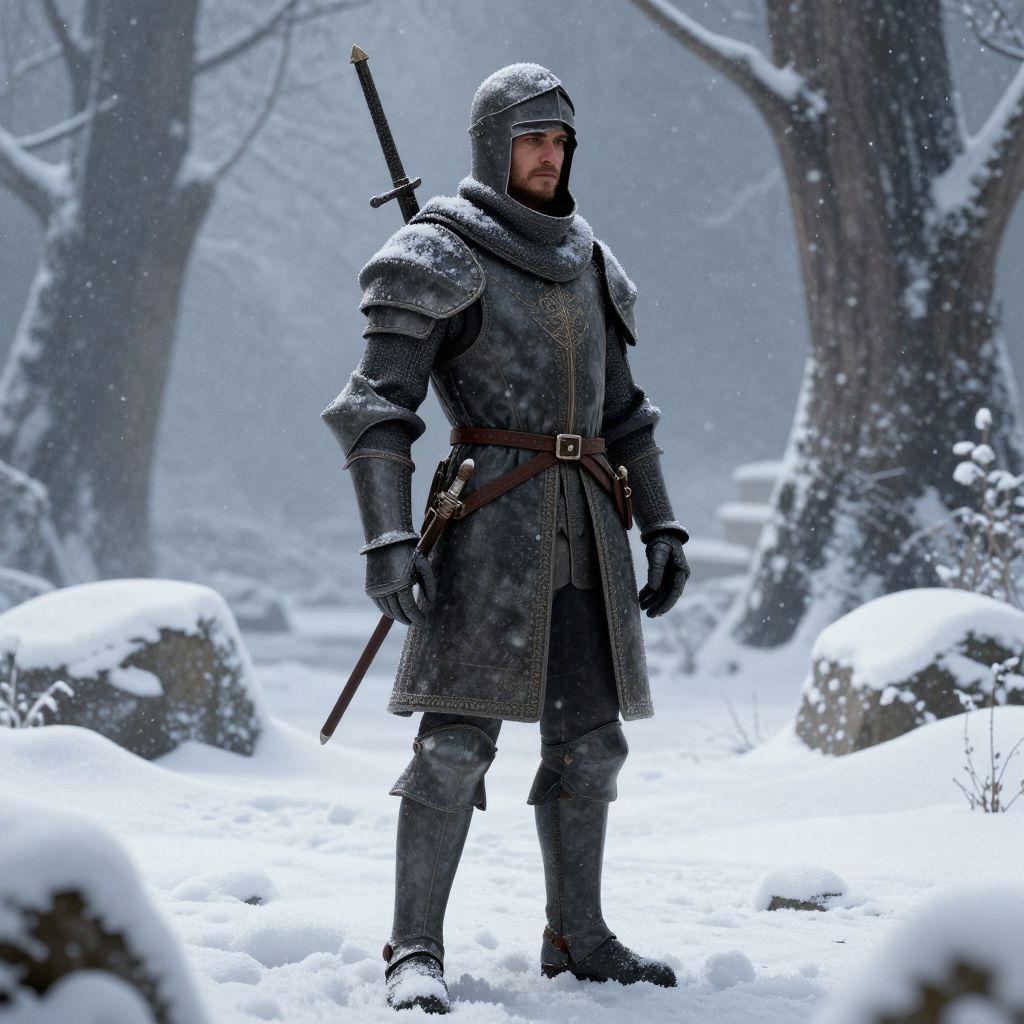 Knight in Snowy Realistic Landscape