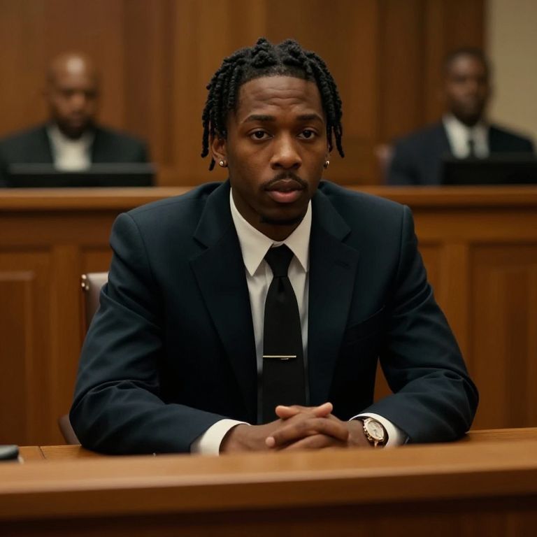 Wood Carving photography by Annie Leibovitz, film still/ Young Thug sitting in a courtroom /style by David Fincher/32k, photo real,