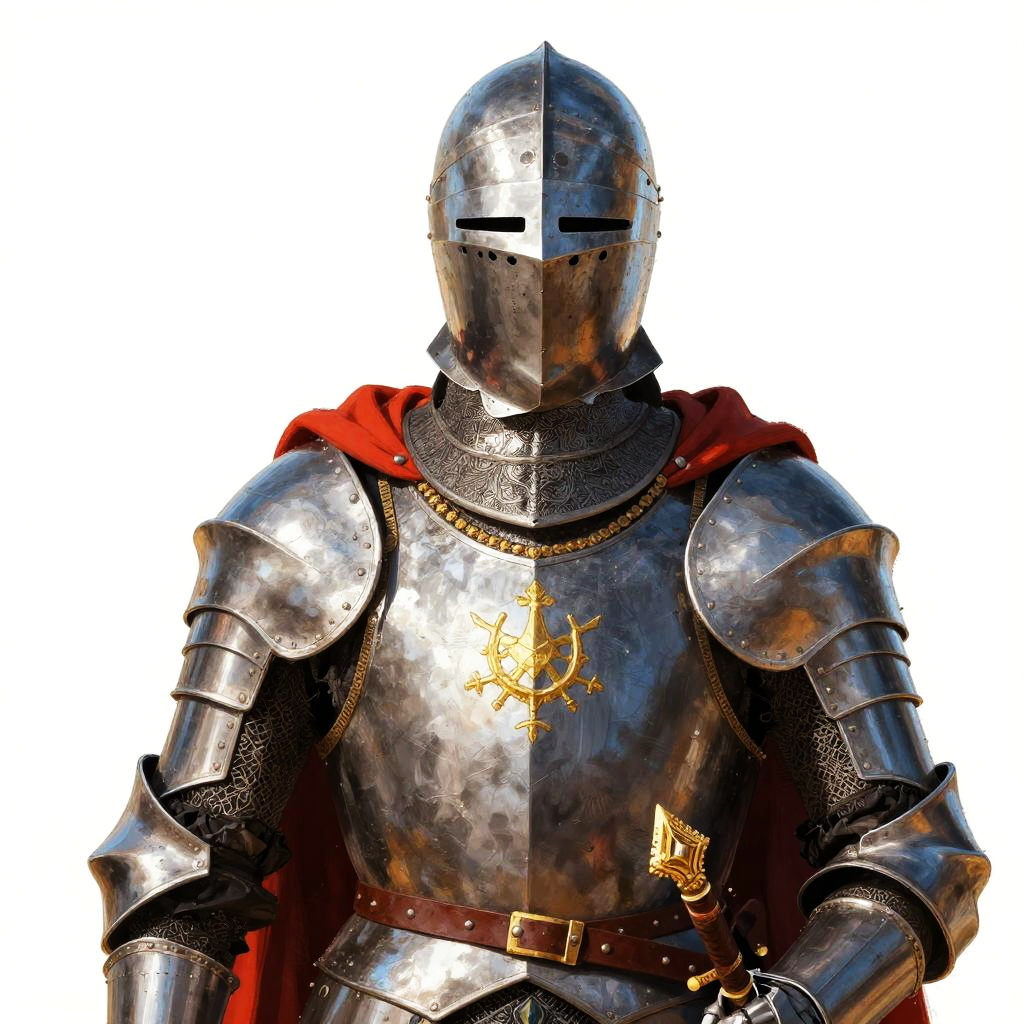 Realistic photo.Joe Madureira drawing style, showcasing a valiant knight, with classical royal colors realistic photo