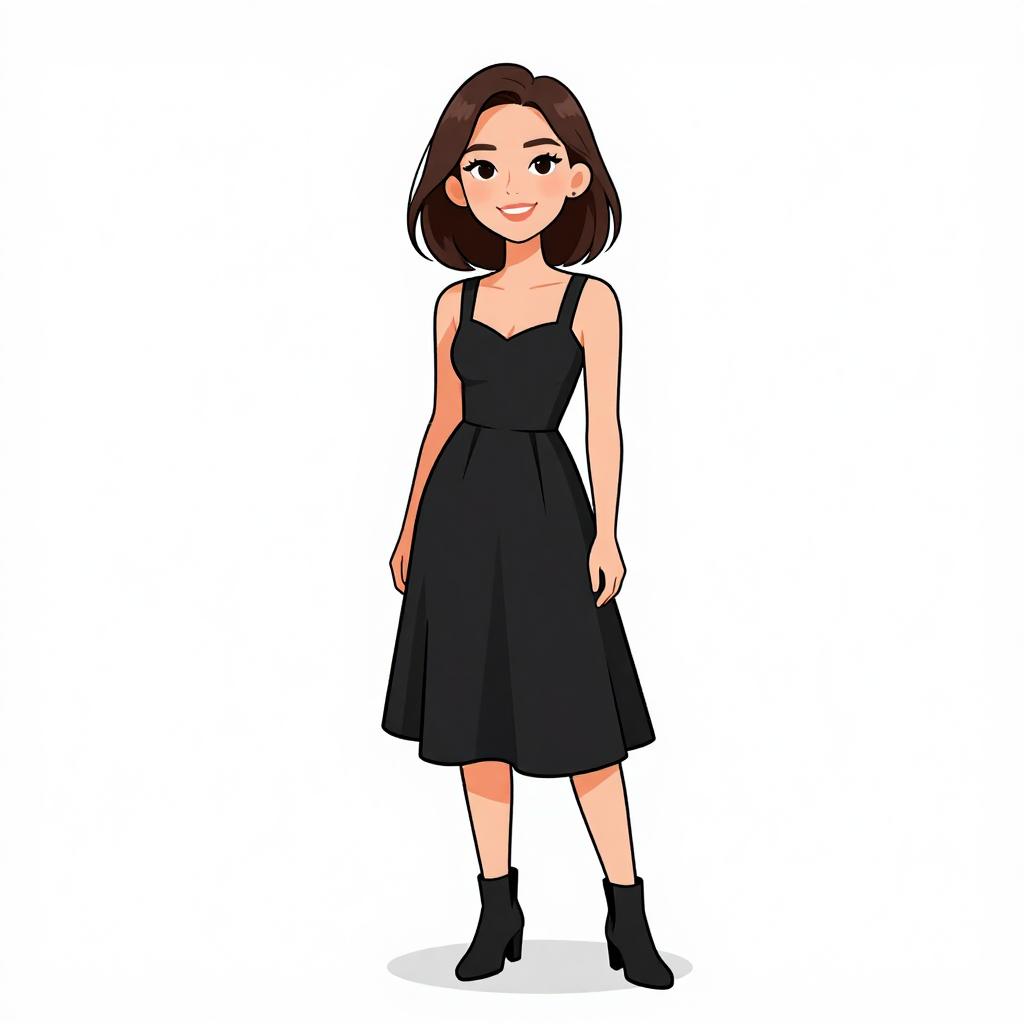 Woman with pretty face and pretty hair. smiling Woman, casual edgy, sheer black midi dress layered over a solid black slip, round neck, long sleeves, relaxed fit, black combat boots with a classic design, carrying a black backpack with visible zippers, minimal jewelry, plain white studio background. --sref 1467