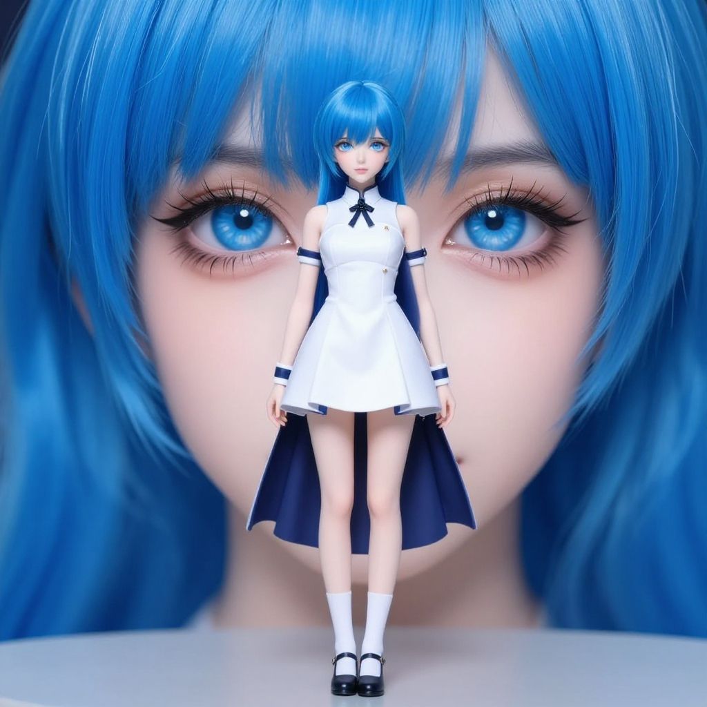 (8k, RAW photo, best quality, masterpiece:1.2), (intricate details), perfect eyes, perfect face, perfect lighting, beautiful, (masterpiece:1.2), (best quality:1.2), 1girl, solo, marinette, blue hair, full body