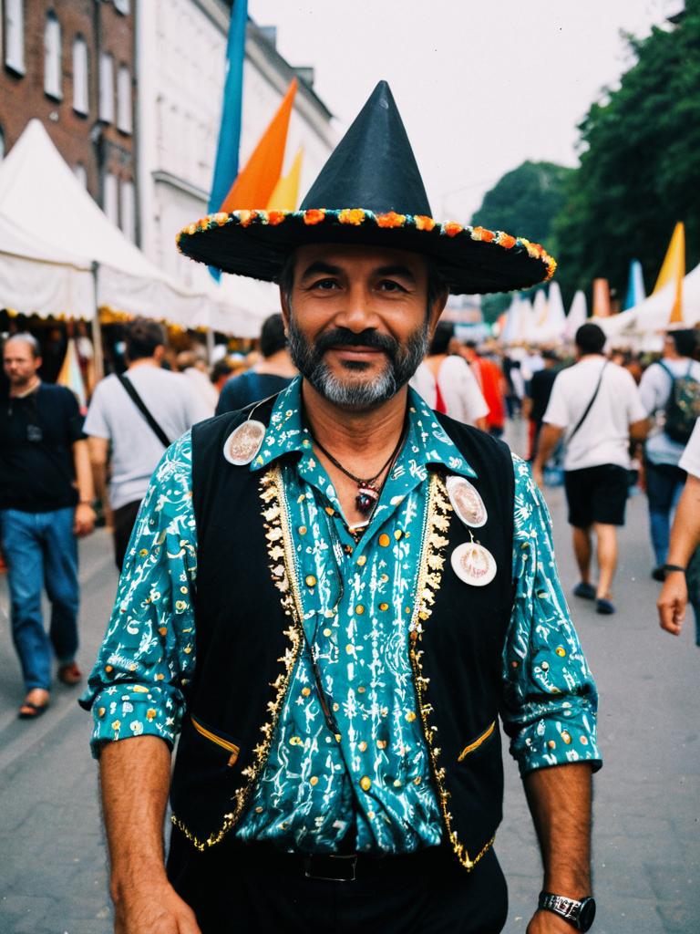 Man in Themed Outfit, festival photo, photorealistic realism