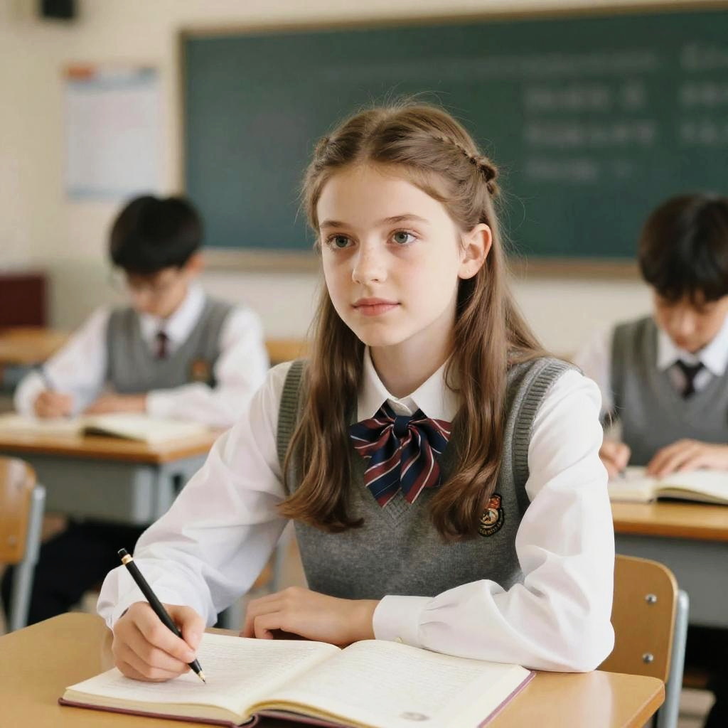 Cinematic photo anna in school, . 35mm photograph, film, bokeh, professional, 4k, highly detailed