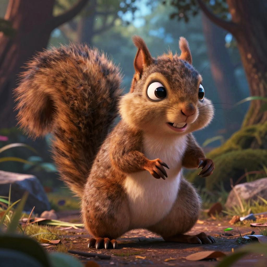 3D animation, kawaii, cheerful chipmunk, laughing, hand on hip.