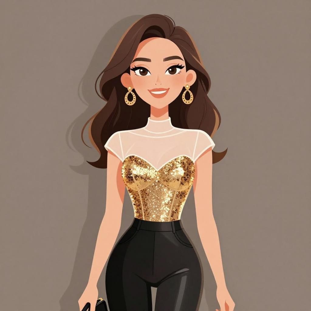 Glamorous Woman in Glittering Outfit