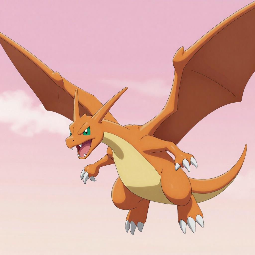 Digital illustration of two Aerodactyl Pokémon flying against a soft pink sky. The creatures have sharp teeth, green eyes, large wings, and visible claws. The art style is inspired by the artist Fakepucco, featuring smooth shading and dynamic poses.