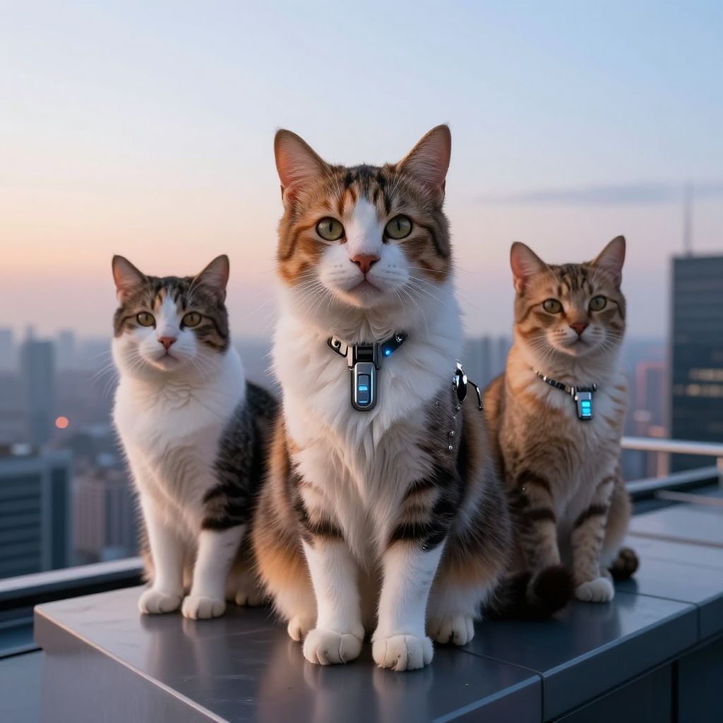 Ultra-Realistic Cybernetic Cats at Dusk