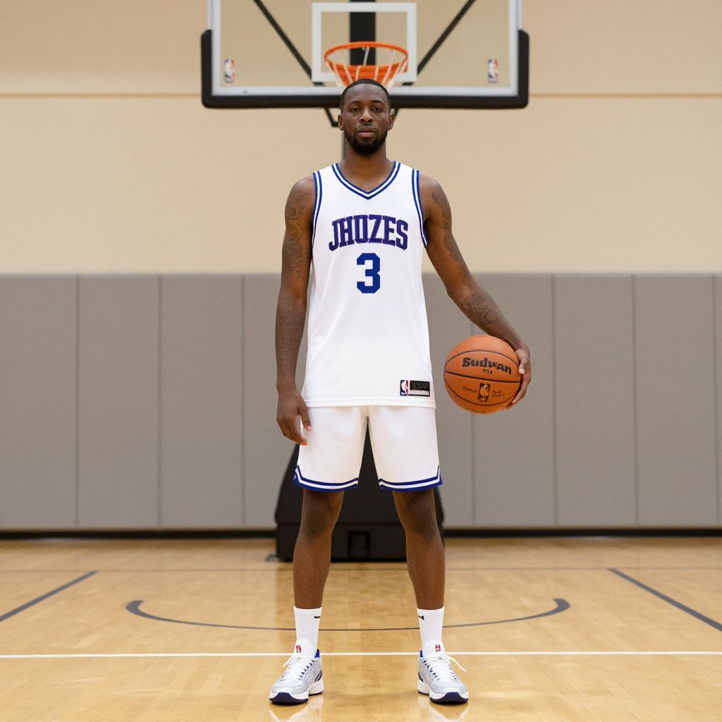 Nba Player Costume, basketball player standing in a gym with a basketball hoop