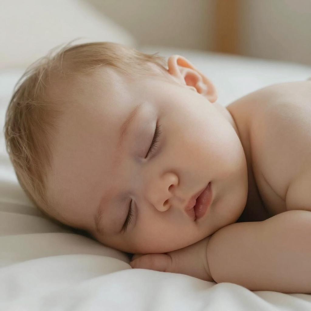 Photograph of a sleeping baby, close-up shot from a side angle. The baby's face is partially covered by a pink and white checkered blanket. The baby's skin is soft and fair, with tiny, closed eyes and a slight pinkish hue to the lips. The lighting is natural and gentle, highlighting the baby's delicate features. The depth of field is shallow, with the background blurred, keeping focus on the baby's face.