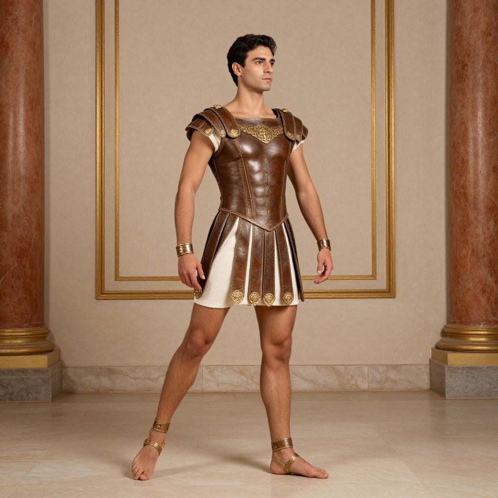 Grecian Dance Costume, man in a roman costume standing in a room