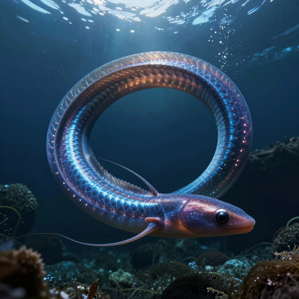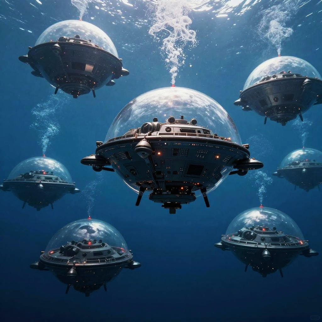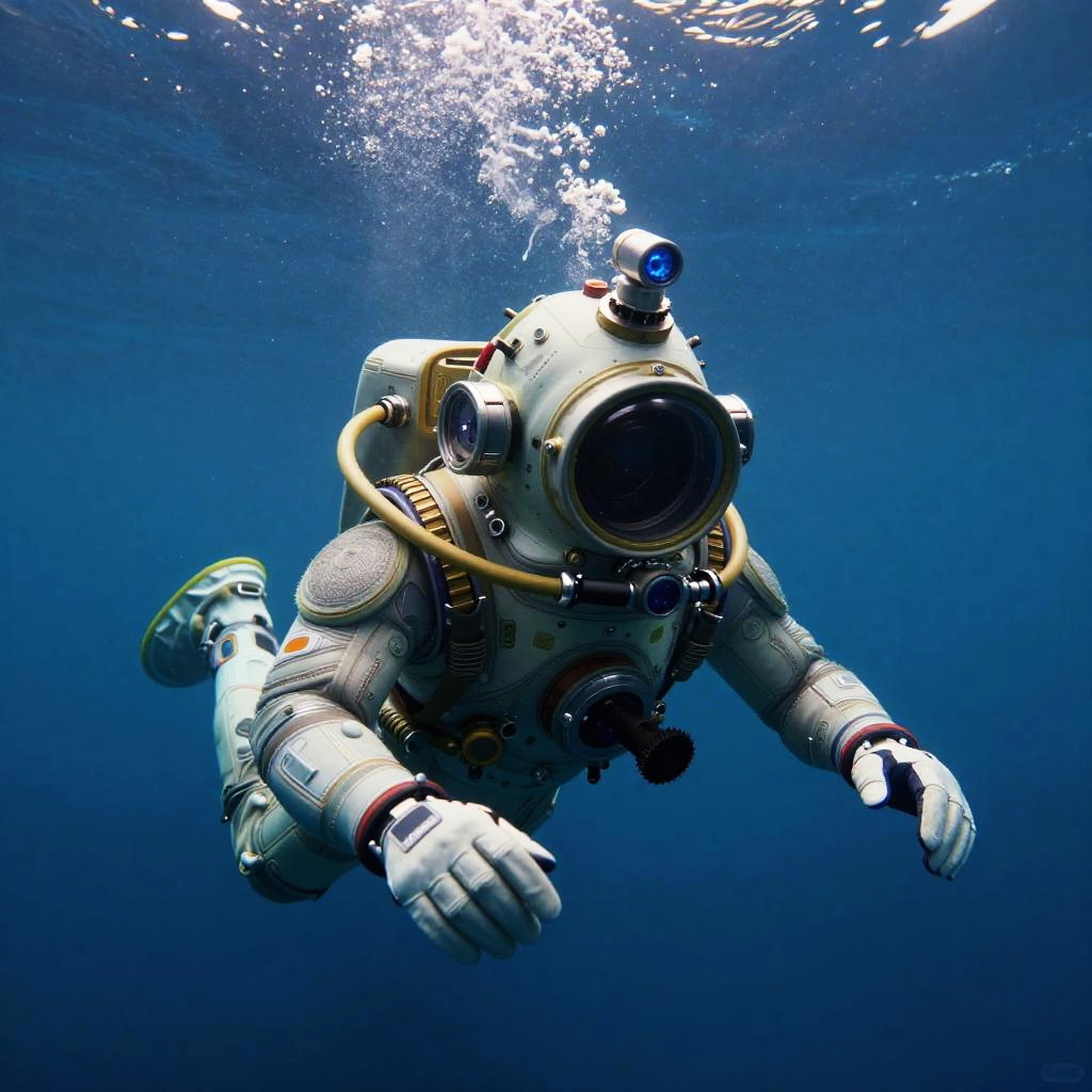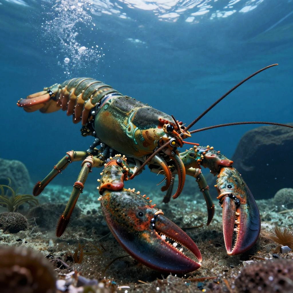 Epic underwater cyberpunk scene of a digital oceanic guardian octopus, dynamic pose, ultra-wide angle, National Geographic style, hyper-detailed with intricate color grading, shot on a 70mm lens, cinematic